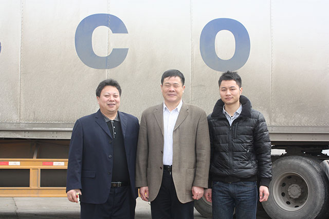 2011年3月17日湖南省长沙海关副关长熊松海在公司董事长(左)和总经理严扬志(右)陪同下视察公司进出口业务