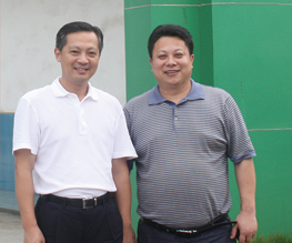 2010年7月 湖南省副省长(原娄底市市长)张硕辅(左)在公司董事长严能生的陪同下考察公司.